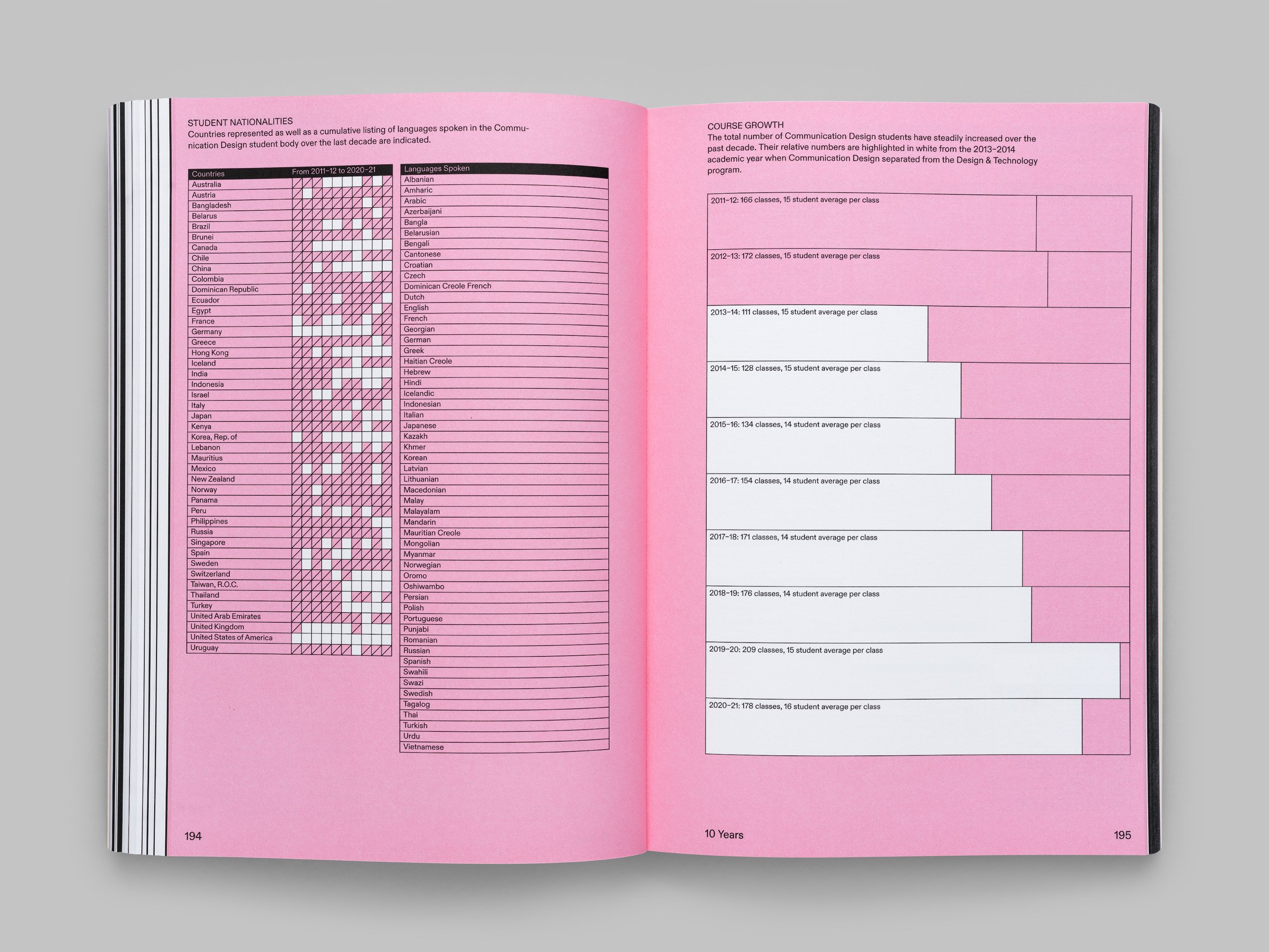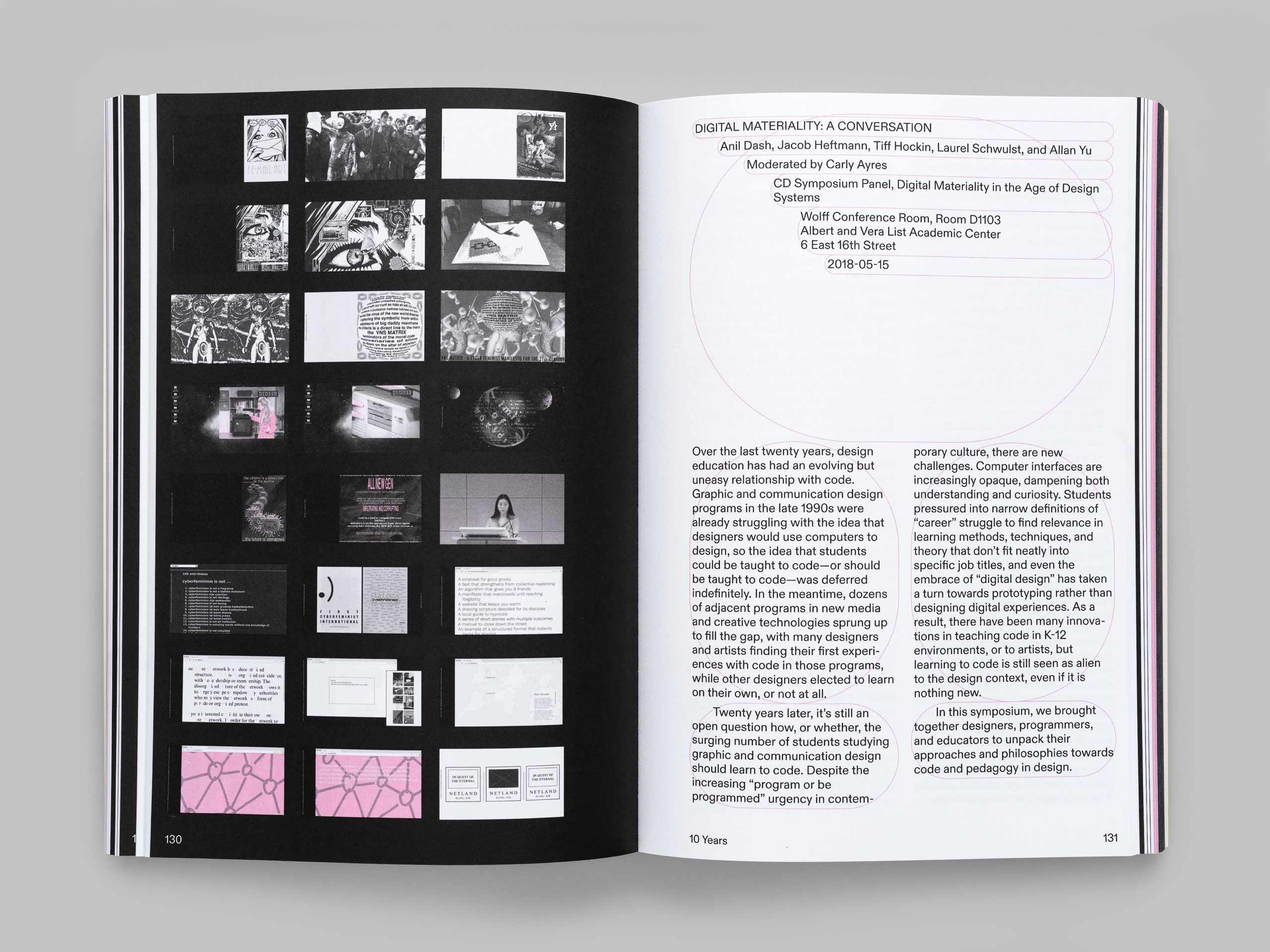 1, 10, 100 Years of Form, Typography, and Interaction at Parsons catalogs the history of design education at Parsons. It is built on a carefully selected set of lightweight, interconnected technologies, proposing an alternative to the current monolithic software tools for designing books. (With E Roon Kang as 908A)